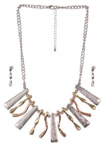 SERENITA Hammered metal drop necklace set TRI
