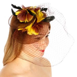 V33 Layer netted feather fascinator Brown