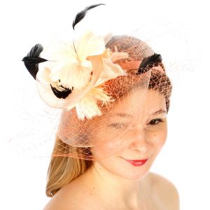 V33 Layer netted feather fascinator Champagne