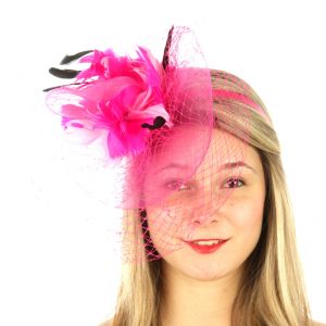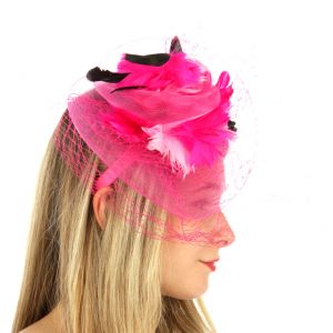 V33 Layer netted feather fascinator Fuchsia