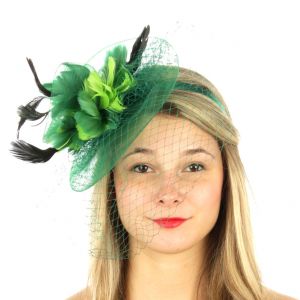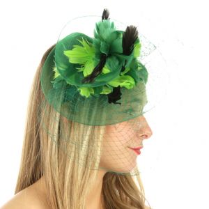 V33 Layer netted feather fascinator Green