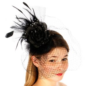 V35 Feathered fascinator Black