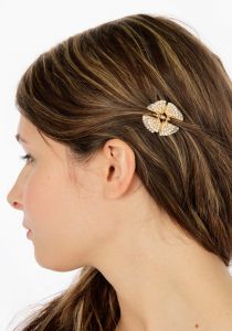 SERENITA Butterfly pearl+ rhinestone jaw clip Gold/Pearl/Clear