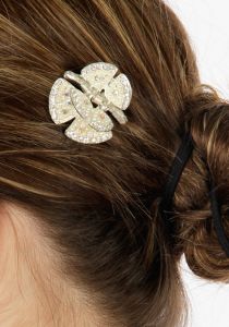 SERENITA Butterfly pearl+ rhinestone jaw clip Silver/Pearl/Clear