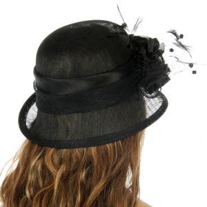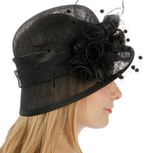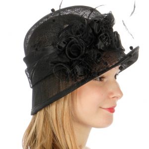 Rosette flower sinamay cloche hat Black