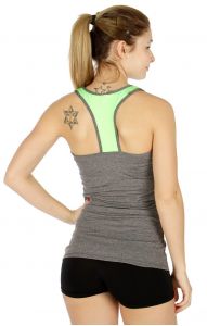 E16 Side colorblock racerback active tank top BK/GN