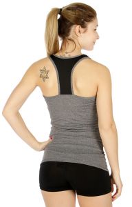 E16 Side colorblock racerback active tank top GY/BK