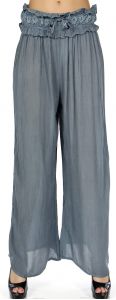 SERENITA Crochet waist palazzo pants Grey-Blue