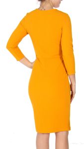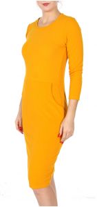 Y41A Knee length 3/4 sleeve dress with pockets Mustard