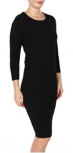 Y41A Knee length 3/4 sleeve dress with pockets Black