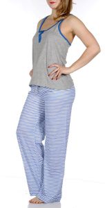 SERENITA Solid tank & striped pants pj set Heather Grey