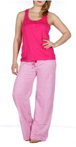 SERENITA Solid tank & striped pants pj set Pink