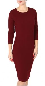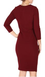 Y41A Knee length 3/4 sleeve dress with pockets Burgundy