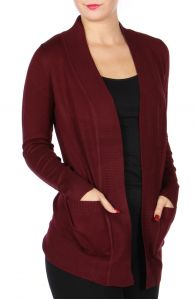T60S Solid open front cardigan Burgundy