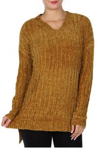 SERENITA High-low V neck sweater Marigold