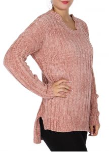 SERENITA High-low V neck sweater Dusty Pink
