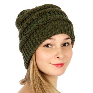 F00 SERENITA C.C Marled ribbed knit beanie Olive Made in KOREA