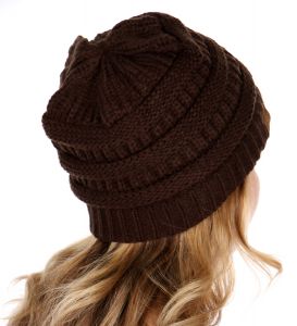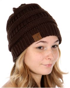 F01 Serenita C.C Oversized solid thick knit beanie hat Brown