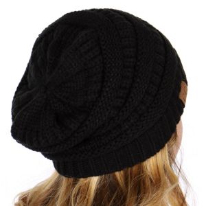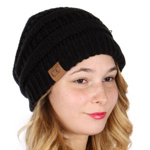 F01 Serenita C.C Oversized solid thick knit beanie hat Black
