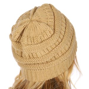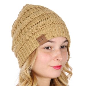 F01 Serenita C.C Oversized solid thick knit beanie hat Camel