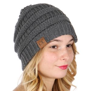 F01 Serenita C.C Oversized solid thick knit beanie hat D. Melange Grey
