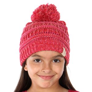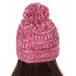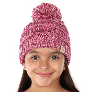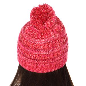 SERENITA C.C Children 4-tone pom pom beanie Hot Pink/Burgundy/Pale Pink/White