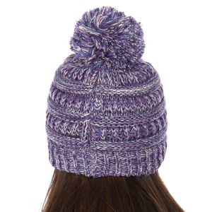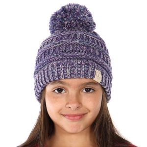 SERENITA C.C Children 4-tone pom pom beanie Purple/D.Denim/Beige/Navy