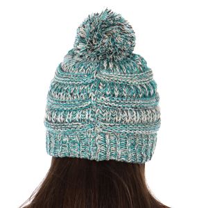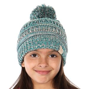 SERENITA Children 4-tone pom pom beanie Teal/Black/Beige/White