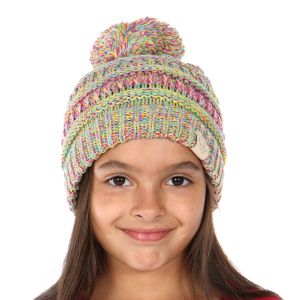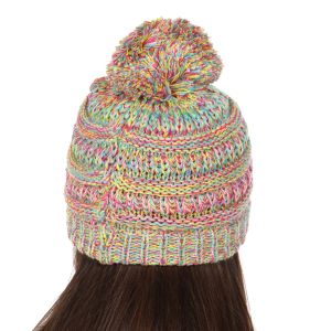 SERENITA C.C Children 4-tone pom pom beanie Yellow/Hot Pink/Turquoise/Pale Pink