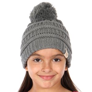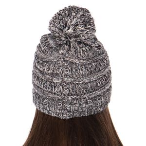 SERENITA C.C Children 4-tone pom pom beanie Light Grey/Beige/White/Black
