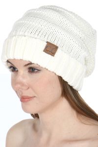 F03 C.C Solid Simple Oversized slouchy Knit Beanie Hat, Ivory