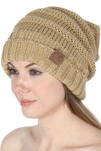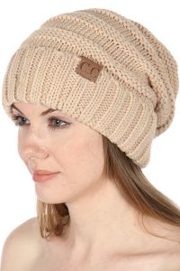 F03 C.C Solid Simple Oversized slouchy Knit Beanie Hat, New-Beige