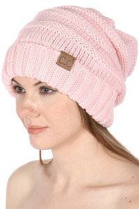 F03 C.C Solid Simple Oversized slouchy Knit Beanie Hat, Pale-Pink