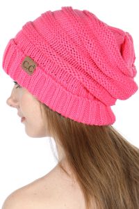 F03 C.C Solid Simple Oversized slouchy Knit Beanie Hat, New-Candy-Pink