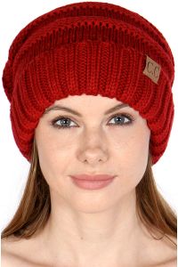 F03 C.C Solid Simple Oversized slouchy Knit Beanie Hat, Red