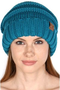F03 C.C Solid Simple Oversized slouchy Knit Beanie Hat, Teal