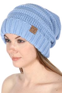 F03 C.C Solid Simple Oversized slouchy Knit Beanie Hat, Pale-Blue