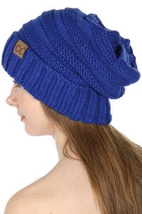 F03 C.C Solid Simple Oversized slouchy Knit Beanie Hat, Royal-Blue