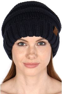 F03 C.C Solid Simple Oversized slouchy Knit Beanie Hat, Navy