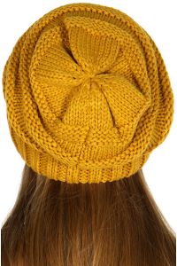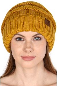 F03 C.C Solid Simple Oversized slouchy Knit Beanie Hat, Mustard