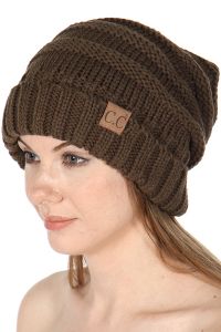 F03 C.C Solid Simple Oversized slouchy Knit Beanie Hat, Taupe