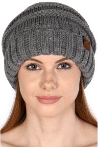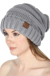 F03 C.C Solid Simple Oversized slouchy Knit Beanie Hat, Natural-Grey