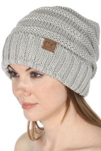 F03 C.C Solid Simple Oversized slouchy Knit Beanie Hat, Metallic-Silver