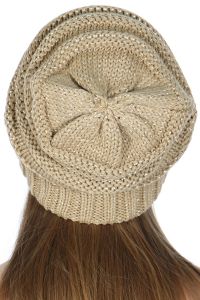 F03 C.C Solid Simple Oversized slouchy Knit Beanie Hat, Metallic-Gold