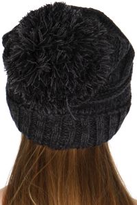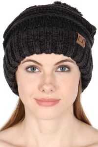 F05 C.C Oversized multi color Slouchy pom pom Beanie Hat, Black/Grey