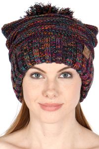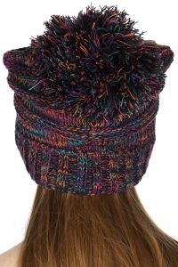 F05 C.C Oversized multi color Slouchy pom pom Beanie Hat, Black Multi