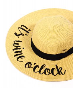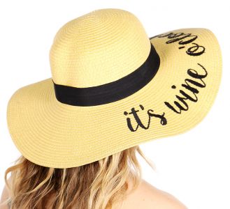 Z08 Embroidery lettering wide brim Sun hat 9-16, IT'S.WINE.O'CLOCK