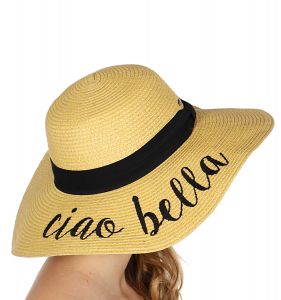 Z08 Embroidery lettering wide brim Sun hat 9-16, CIAO.BELLA
