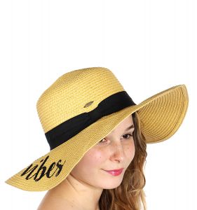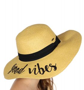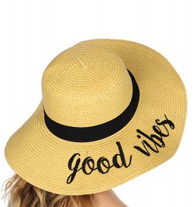 Z08 Embroidery lettering wide brim Sun hat 9-16, GOOD.VIBES