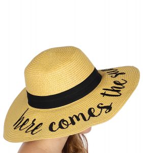 Z08 Embroidery lettering wide brim Sun hat 9-16, HERE.COMES.THE.SUN